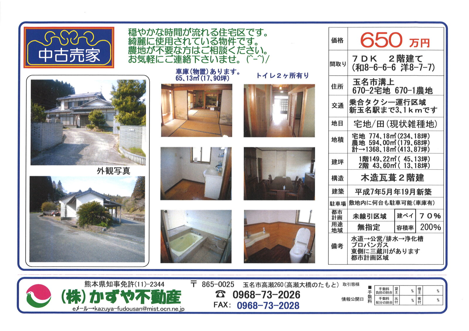 | 所在地 | 玉名市溝上670-2(宅地) 670-1(農地) |