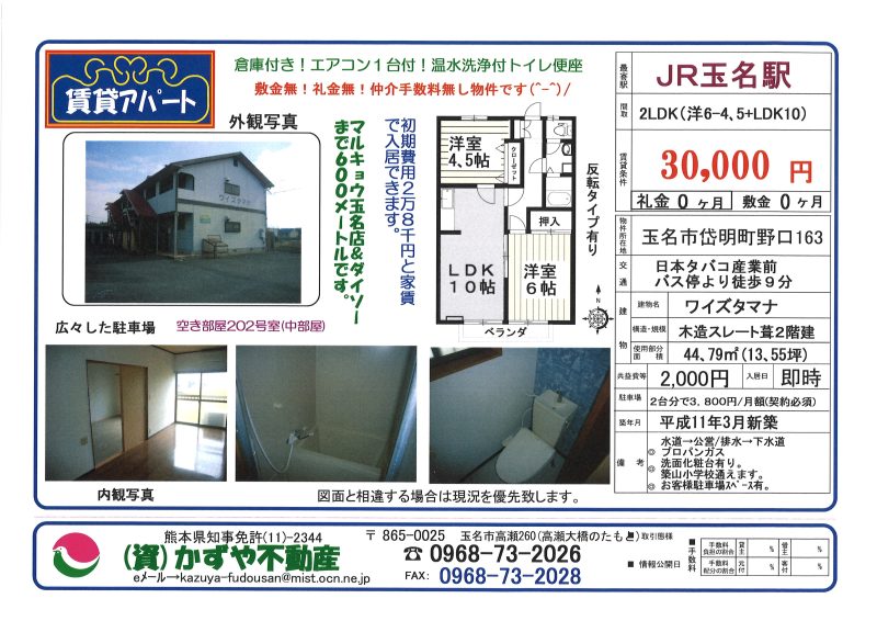 熊本県玉名市岱明町野口163 (ワイズタマナ) 202号室 |