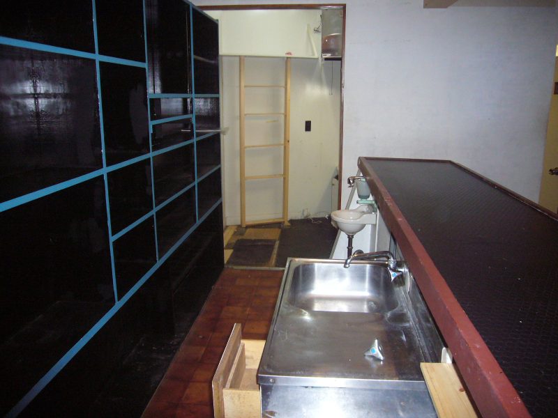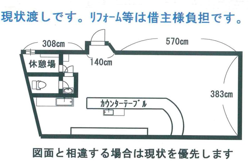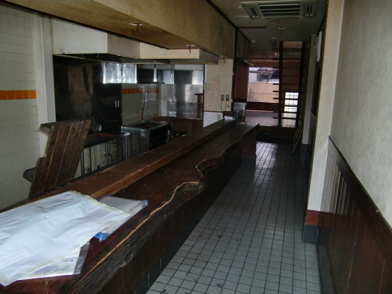 上水道/下水道 カウンターテーブル有 イスとテーブル2つ有 流し台有 現状渡しです。リフォーム等は借主様負担です。
