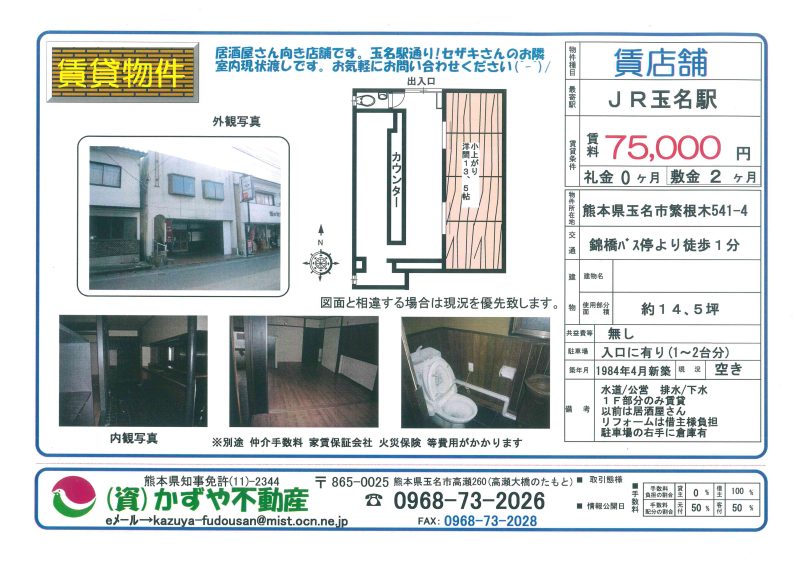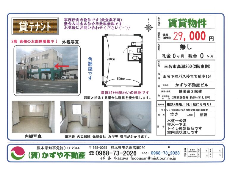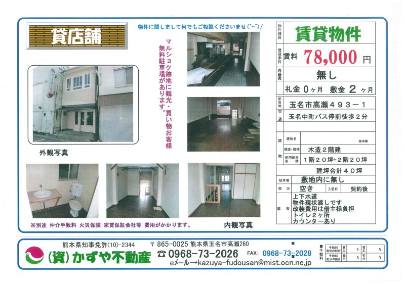 熊本県玉市高瀬542 貸テナント |