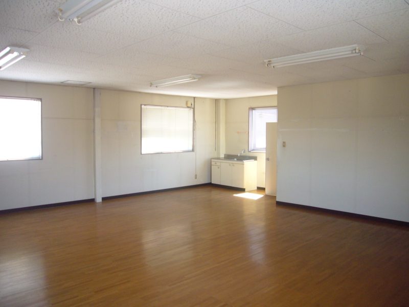 事務所スペース付き倉庫です。流し台は1階にも2階にもあります。南側からも荷物の搬出出来ます。水道→公営 排水→公共下水 築年数→1989年1月新築 建物現状有姿渡しです。 トイレ個室2カ所あります。