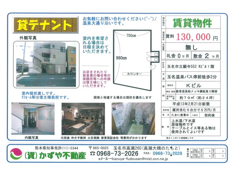 熊本県玉名市立願寺552(Kビル1階) |