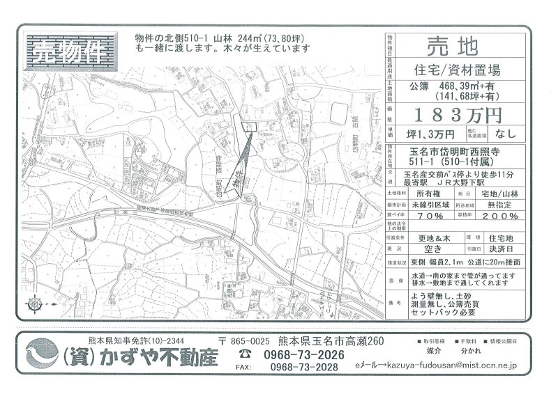 | 所在地/地目 | 熊本県玉名市岱明町西照寺330番16 原野 |