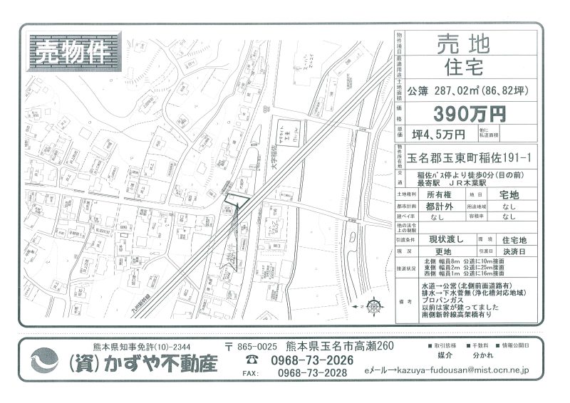 | 所在地/地目 | 熊本県玉名郡玉東町稲佐451 宅地 |