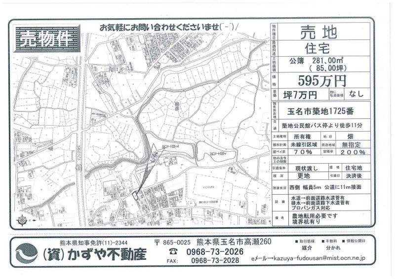| 所在地/地目 | 玉名市滑石987―3(分筆予定) 畑 |