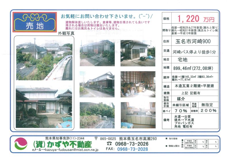 | 所在地/地目 | 熊本県玉名市下小田912(畑) 915(宅地) |