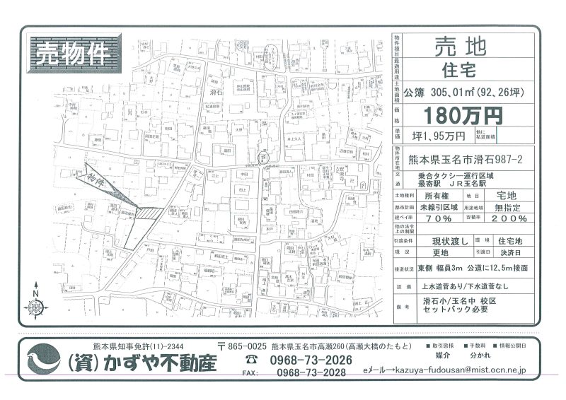| 所在地/地目 | 玉名市滑石987-2 宅地 |