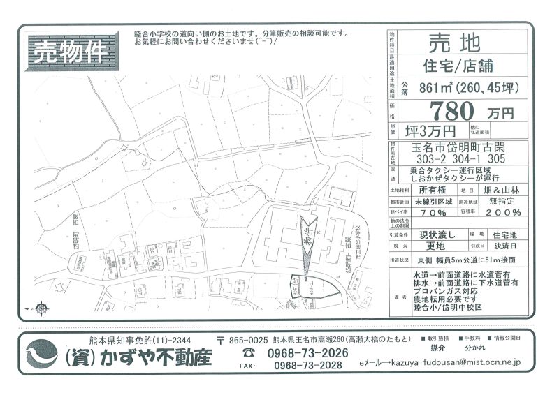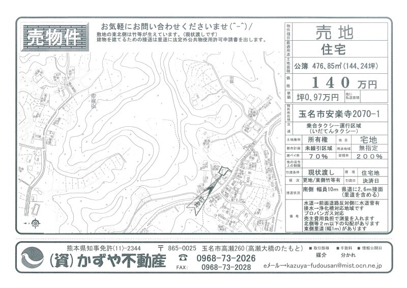 | 所在地/地目 | 熊本県玉名市安楽寺2070-1 宅地 |