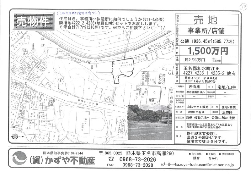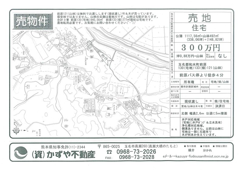 | 所在地/地目 | 熊本県玉名郡和水町原口845-1 845-2 846-2 848-2 848-6 宅地/畑 |