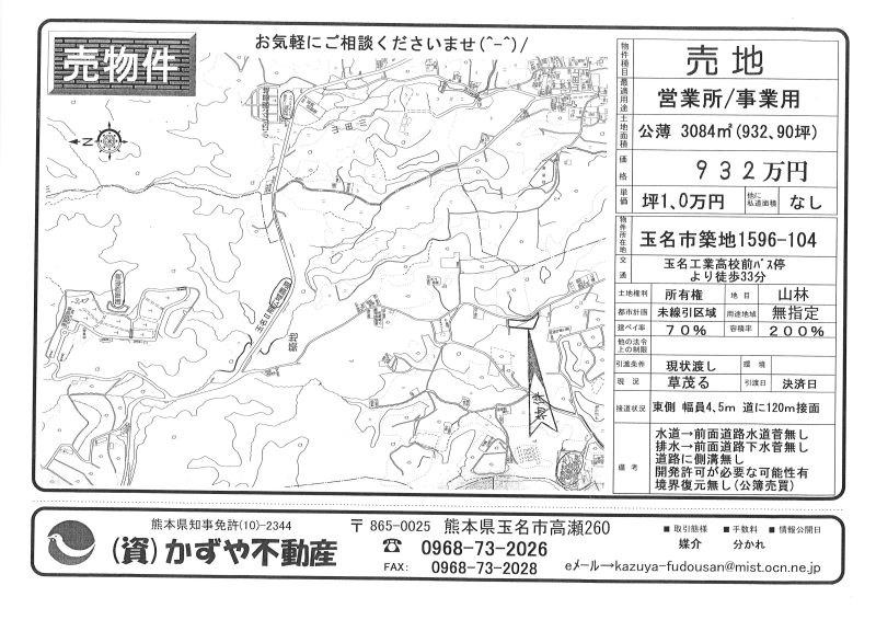 | 所在地/地目 | 熊本県玉名市築地1596-104 山林 |
