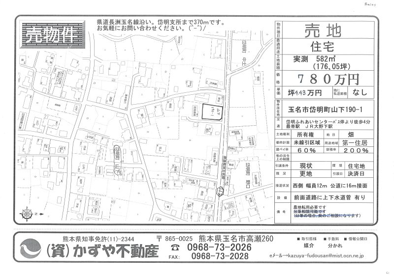 | 所在地/地目 | 熊本県玉名郡玉東町稲佐525 宅地 |