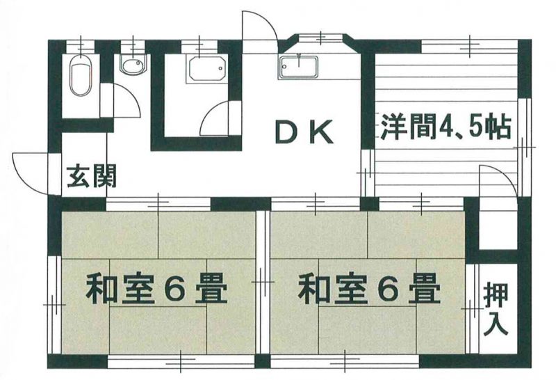 | 間取り | 2DK→4戸(和室6-6畳+DK) |