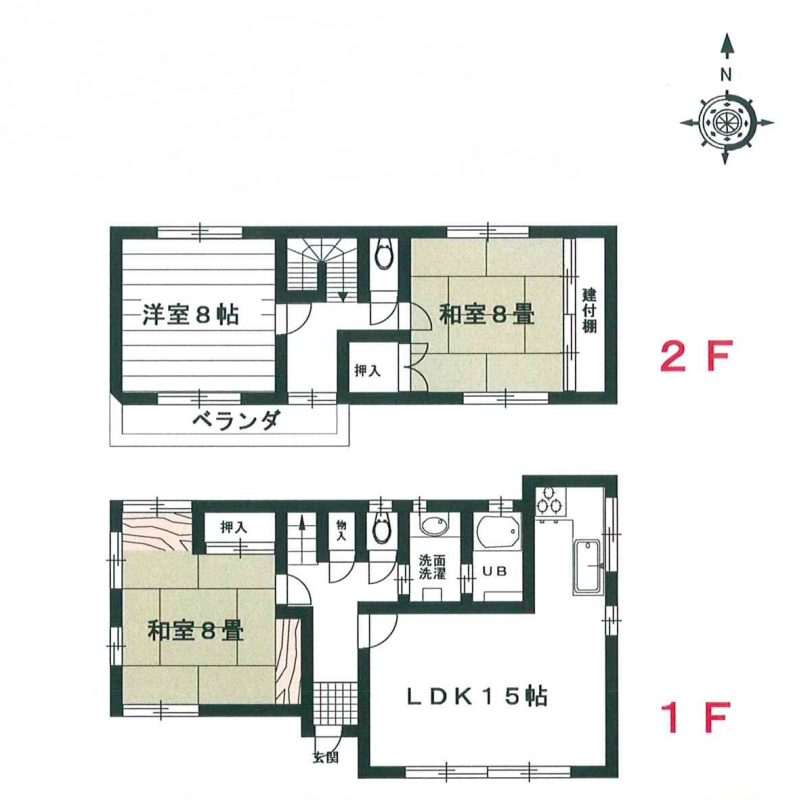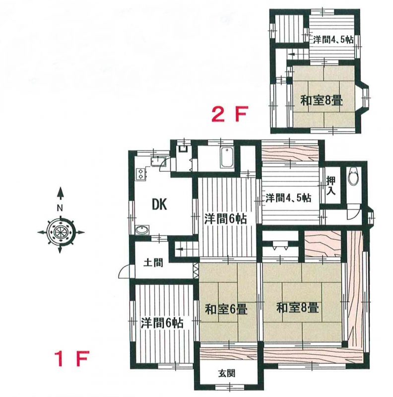 | 間取り | 7DK 1F(和8-6 洋6-6-4.5) 2F(和8 洋4.5) |